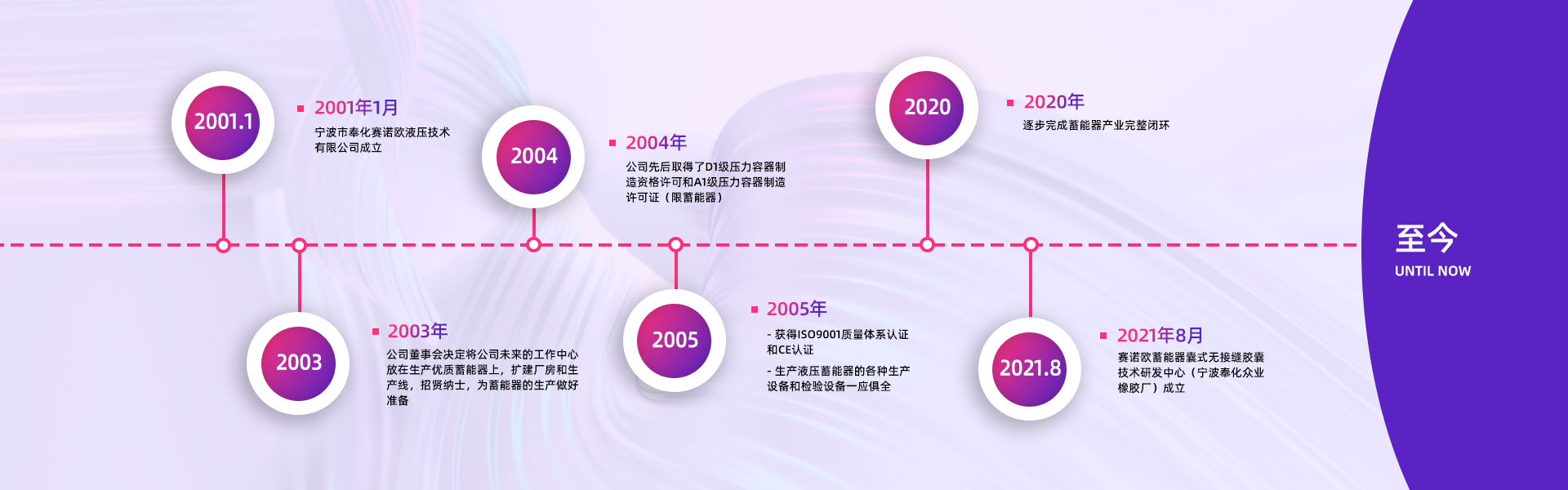 寧波市奉化賽諾歐液壓技術有限公司創建于2001年7月,是國內優秀的液壓蓄能器專業制造公司,制造設備齊全,檢測手段完善。同時也是探索蓄能器囊式結構一體化的科研創新型企業。      2001年,公司董事會決定將公司未來的工作重心放在生產優質蓄能器上。公司一方面著手于廠房擴建和生···